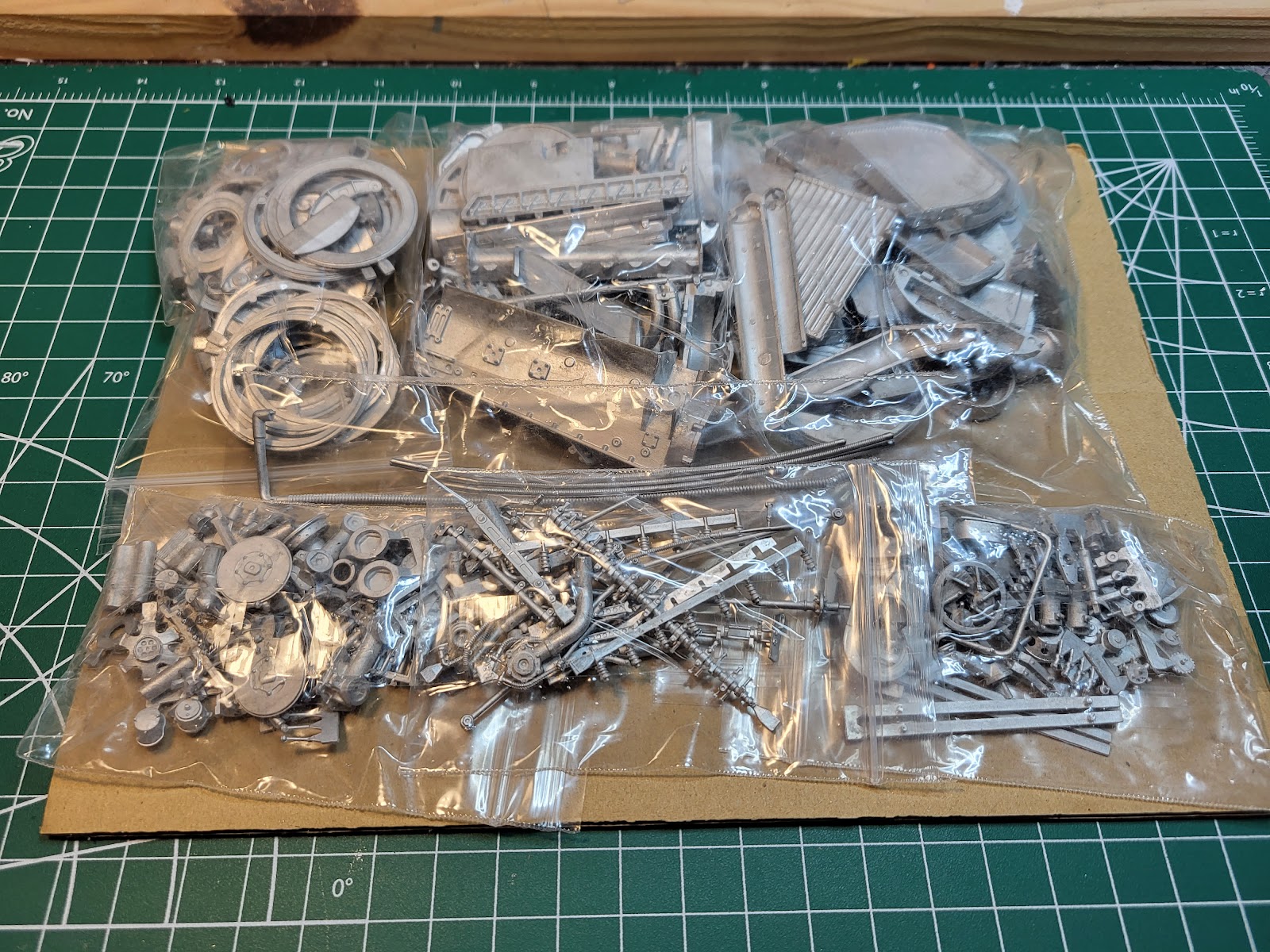 Lots of sorting, cleaning, sanding, drilling, filing, grinding, etc., all to get the basic engine block glued up and the camshaft installed.